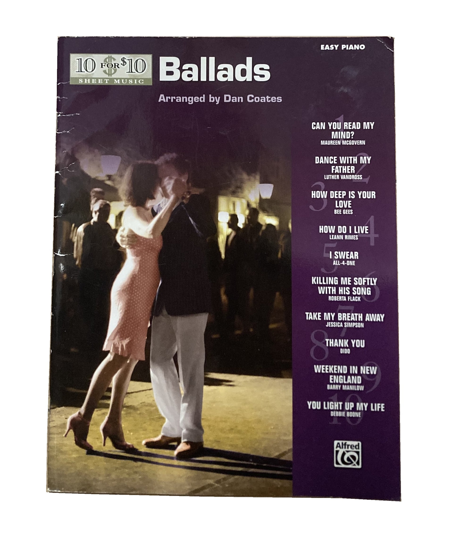 10 for 10 Sheet Music: Ballads contains the most beautiful melodies from the pop charts over the years. Titles: Can You Read My Mind * Dance with My Father * How Deep Is Your Love * How Do I Live * I Swear * Killing Me Softly With His Song * Take My Breath Away * Thank You * Weekend in New England * You Light Up My Life.